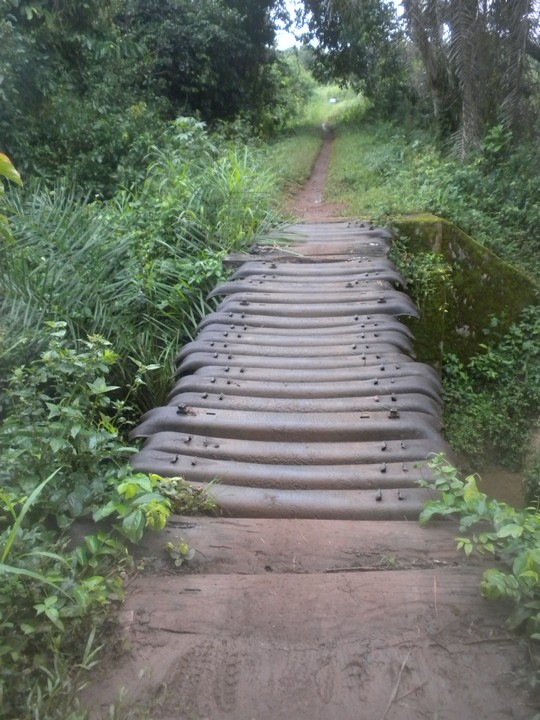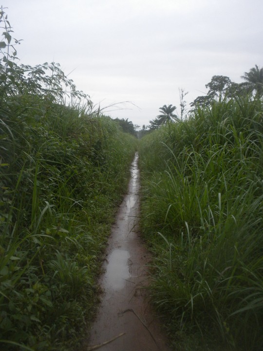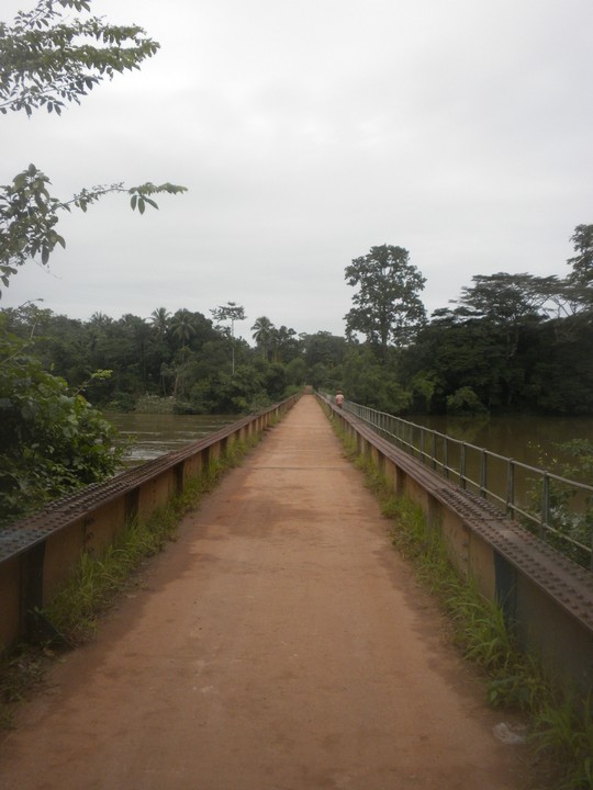 I can't even approach an adequate picture for the magic I felt following the ghost of the railway through the bush of southwestern Salone. The path was typically excellent, lined by vistas, imbued with the smell of flowers, perfectly shaded. It was punctuated by clever bridges made of logs or train parts, the ruins of old stations that had been filled with homes, hospitals, and supply stores, and an endless supply of quaint thatch hut villages. Everyone I met was absurdly happy to see me and receptive of my mission and ready to provide whatever I needed and talk for as long as I wanted. In every village, someone spoke perfect English and had fascinating stories to tell...